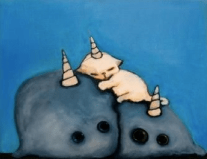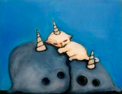 How freaking CUTE is this painting?! Unicorn kitty atop narwhals? Died. Dead. Love.